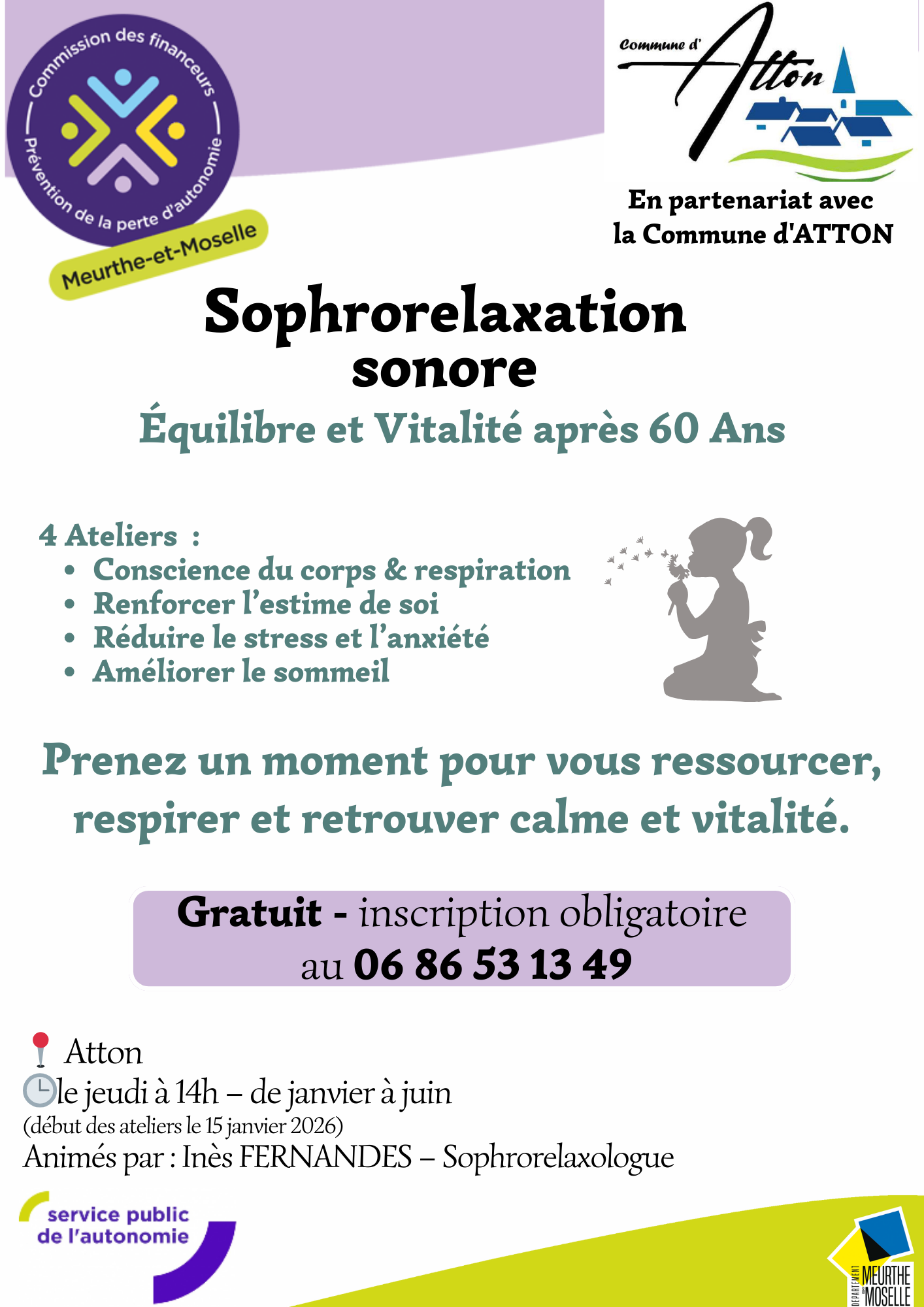 Offrez-vous une vraie pause… Deux mardis par mois, de 18h à 19h, participez à une séance de sophrorelaxation en groupe, et plongez dans un moment de calme profond.